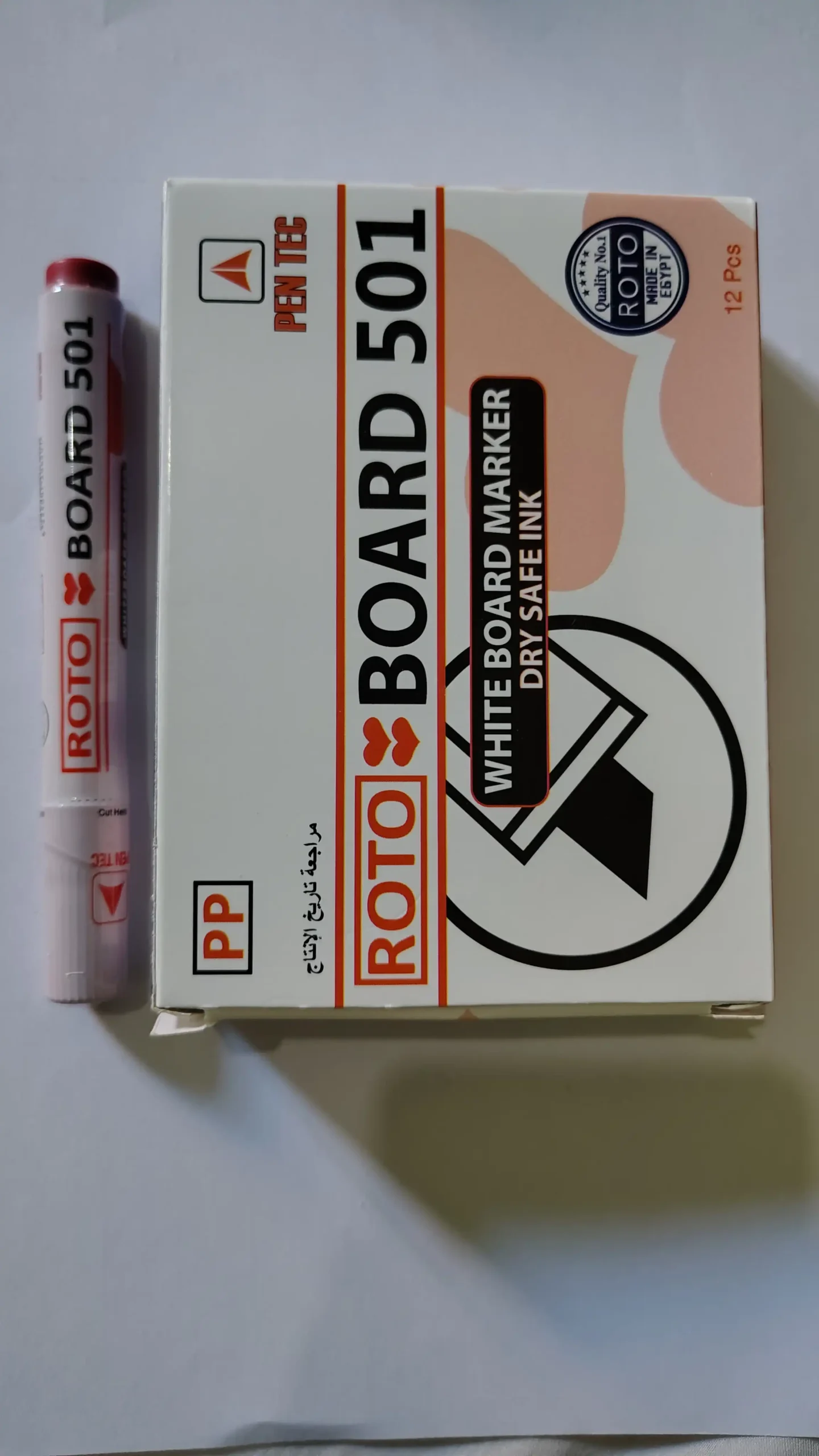 قلم سبوره روتو 501 لون احمر للكتابه الواضحه على السبوره البيضاء ويمسح بسهولة بدون اثر، مناسب للاستخدام اليومي في المدارس والمكاتب داخل مصر.